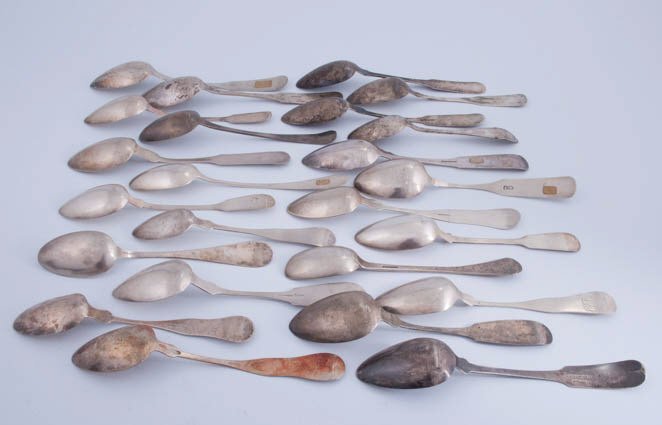 Group of Coin Silver Spoons and Sterling Marrow Scoop5 days LeftA Group of English and American Coin Silver Spoons and English Sterling SpoonsApr 17, 2026A Group of American Coin Silver Fiddle-End SpoonsApr 19, 2026Group of Early Norwalk CT Coin Silver Spoons5 days LeftSwiss 20th century Part of the "Laurel" household set by JEZLERApr 23, 2026Solid Sterling Silver Flatware Set, Royal Windsor Pattern By Towle, Patented 1935Apr 18, 2026Four Coin Silver Souvenir Spoons6 days LeftGroup of Assorted Sterling Silver Souvenir Spoons6 days LeftGroup of Assorted Silver Souvenir Spoons6 days LeftGROUP OF ASSORTED AMERICAN STERLING SILVER FLATWARE.Apr 24, 2026Hans Hansen silverware no. 7. Two Art deco table spoons in Danish 830 silver.Six Coin Silver Spoons - B. Benjamin - 74 Grams6 days LeftFABERGE - RUSSIAN LARGE 6 SILVER TABLE SPOONsMay 02, 2026(Pair) 19th Century CHRISTOFLE Cutlery MARLY Flatware Ribbon Pattern Table Spoon Spoons 8 1/2"Apr 21, 202664 STERLING SILVER SOUVENIR SPOONSApr 28, 2026Group of Assorted Table and Bed Linens6 days Left