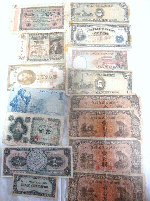 Lot of WWI - WWII German & European Paper Money CurrencyMar 07, 2026Lot of Foreign Paper Money5 days LeftFirst Day Covers & International Banknotes Lot22 hrs LeftLOT OF ANTIQUE & VINTAGE EUROPEAN CURRENCY (23)Mar 08, 2026CIVIL WAR AND OTHER OBSOLETE CURRENCY / NOTES, UNCOUNTED LOT7 days LeftWWII Era Japanese Government Philippines Invasion Occupied Pesos Banknotes Lot (10)Mar 07, 2026Lot of 9 Chinese Currency Notes.1 day LeftLot of 9 Chinese Currency Notes.1 day LeftLot of 11 Chinese Currency Notes.1 day LeftLot of 9 Chinese Currency Notes.1 day LeftLot of (6) American Silver CertificatesMar 15, 2026Large Lot of Foreign Currency - Nigeria, Hungary, Mexico, etc.Paper Currency, Various International Government MintsEarly United States Paper CurrencyMar 20, 2026Collection of International Currencies1 day LeftCollection of International Currencies1 day Left