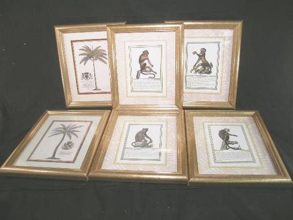 GROUP FRAMED MONKEY PALM TREE PRINTS 6 PCS