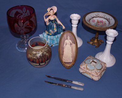 Group Lot of DishesFeb 12, 2026Estate lot interesting colored glasswares, to include candlesticks, pitchers, vases, (2) souvenir6 days LeftLot of Porcelain, Pottery and Glass PiecesFeb 12, 2026Mixed Decorative Household and Vintage Collectible Assorted LotFeb 19, 2026BIG estate lot misc. older porcelains, vases, serving pieces, flow blue large covered pot ( with6 days LeftLot 3 Art Glass Gilt Cobalt Blue Tableware3 days LeftEstate lot of porcelains and ceramics, from Hudson Valley estate, washbowl & pitcher, Hummel, pair6 days LeftGroup lot, Ironstone bowl, "Byzantium", jardiniere, glass squirrel form nut bowl, brass box with2 days LeftA lot of four French La Vallée Paris and Sèvres-style decorated porcelain tableware objectsFeb 24, 2026Estate lot colored glass vases, and pitchers, celuloid box with lid, reproduction Mammy cast iron6 days LeftLot of porcelain (4x)1268 Lots AwayMixed Asian Decorative Porcelain & Brass Candlestick LotFeb 10, 202613pc Rosenthal and Elite Porcelain Tableware3 days LeftThree Box Lots of Glass and PorcelainFeb 21, 2026Nine Royal Crown Derby Porcelain Table Articles4 days LeftCollection of Vintage Vanity & Dresser Accessories6 days Left