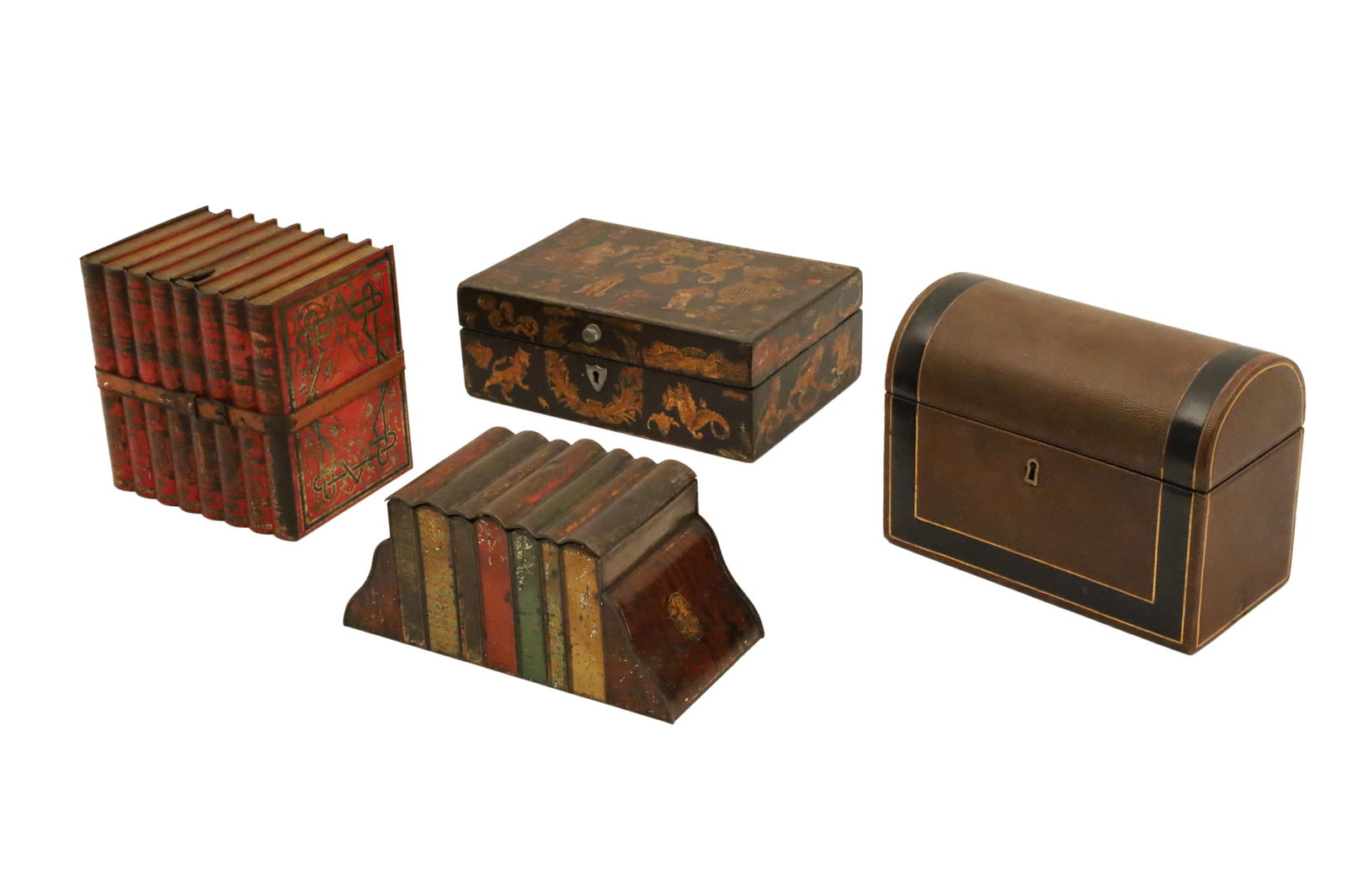 LOT OF THREE CHINESE VINTAGE JEWELRY BOXESMar 01, 2026Reed & Barton & Others Flatware Boxes 4pc LOTFeb 26, 2026LOT ANTIQUE BRONZE BOXES, VANITY ITEMS, ETCMar 07, 2026VTG Box Assortment, Marble, Leather, Wood, 6pc LOTFeb 26, 2026Lot of Seven Hand Painted Wood & Paper Mache Boxes2 days LeftLot of 8 daguerreotype and ambrotype photographs with cases, mid 19th century. To include: 1) "Oreo"Mar 01, 2026LOT OF BISCUIT AND CHOCOLATE TINSFeb 26, 2026(5) JAPANESE BLACK LACQUER PAINTED TABLE BOXES7 days Left(4) PAINTED TOLE TEA CANISTERS, 2 NOW FASHIONED AS TABLE LAMPS7 days Left(4) JAPANESE LACQUERED TABLE BOXES, 1 WITH MOP INLAY6 days LeftSIX ASSORTED ANTIQUE WOODEN BOXESMar 07, 2026Antique lap desk, Chinese lacquer jewelry box, and more boxesFeb 26, 2026(4) COLLECTION OF CARVED WOOD, INLAID & LEATHER-CLAD TABLE BOXES7 days LeftThree Victorian Tunbridge Ware Boxes7 days LeftThree Antique English Boxes5 days LeftA brass mounted leather playing card case, a gilt bronze mounted leather covered jewellery caske...