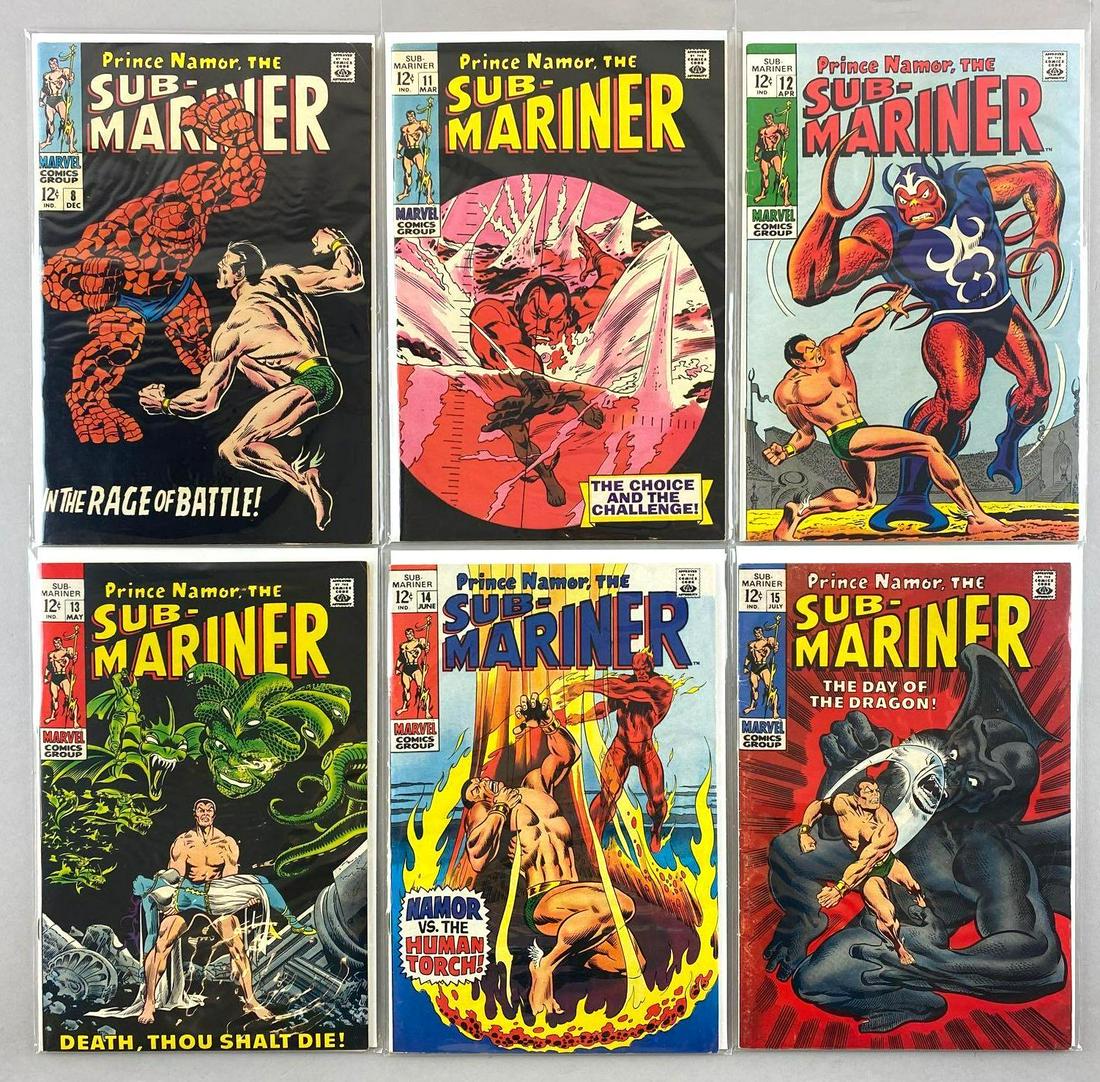 SoldGroup of 6 Marvel Comics Sub-Mariner Comic BooksNo. 23-25, 27-28, 48, March 1970-April 1972, Bronze Age, $.15-$.20, bagged and boarded.See Sold Price