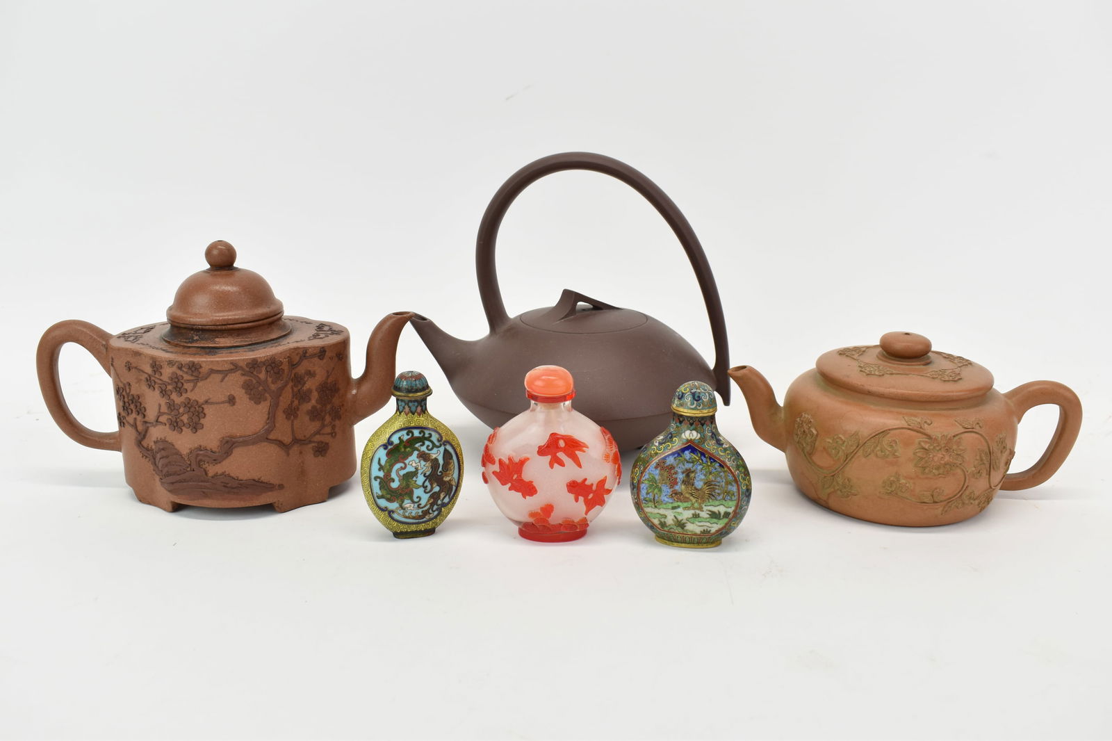 SoldGroup Assorted Asian Table ArticlesGroup Assorted Asian Table Articles. Including Enamel vase from the Museum Company, two vases, Westland company small plate with birds, Japanese glass vase, two carved plates and a soapstone brush potSee Sold Price