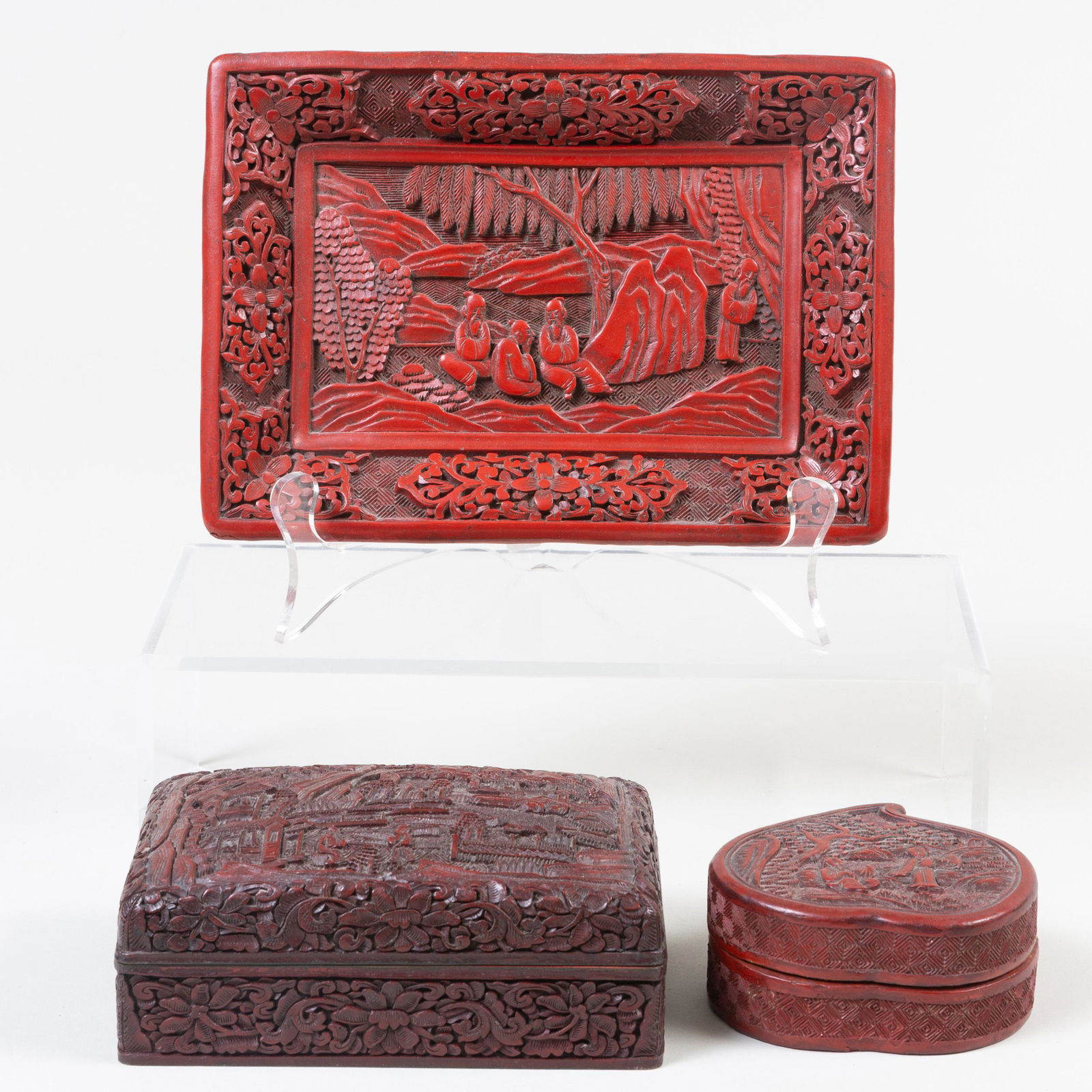 Group of Chinese Cinnabar Objects