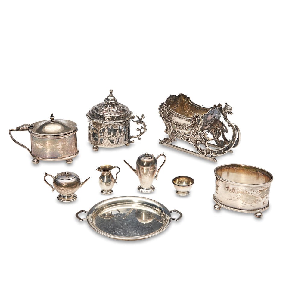 Sterling Silver and Silverplate LotMar 07, 2026Lot of Assorted Sterling Silver Pieces, 60.79 Troy OuncesMar 14, 2026HUGE LOT ANTIQUE & VINTAGE SILVER PLATED TABLEWAREMar 07, 202620PC LOT OF STERLING SILVER ITEMS, 44.3 T.O.W.Mar 07, 2026ASSORTED SILVER-PLATED AND OTHER ARTICLES, LOT OF SEVENMar 04, 2026Lot of sterling silver dresser accessories, including various covered glass jars and scent bottles.5 days LeftENGLISH SILVER LUSTRE CERAMIC TEA AND COFFEE ARTICLES, LOT OF SIXMar 04, 2026Lot of sterling silver accessories and tableware. To include: Chinese wise man figural shakers, O.5 days LeftMeriden, Imperial Silver & Others Assorted 9pc LOT2 days LeftASSORTED ESTATE SILVER PLATED UTENSILS & TABLEWAREMar 07, 2026Sterling Silver Estate TablewaresMar 05, 20266 Piece Sterling Silver Tea and Coffee Set2 days LeftE.G. WEBSTER & SON SILVER-PLATED FIVE-PIECE COFFEE AND TEA SERVICEMar 04, 2026Four Sets of Chinese Export Silver Salt and Peppers5 days Left6 pieces of sterling silver tableware. To include: 1) William Kerr child's cup with rabbit5 days Left5 Sterling Silver Table Articles2 days Left
