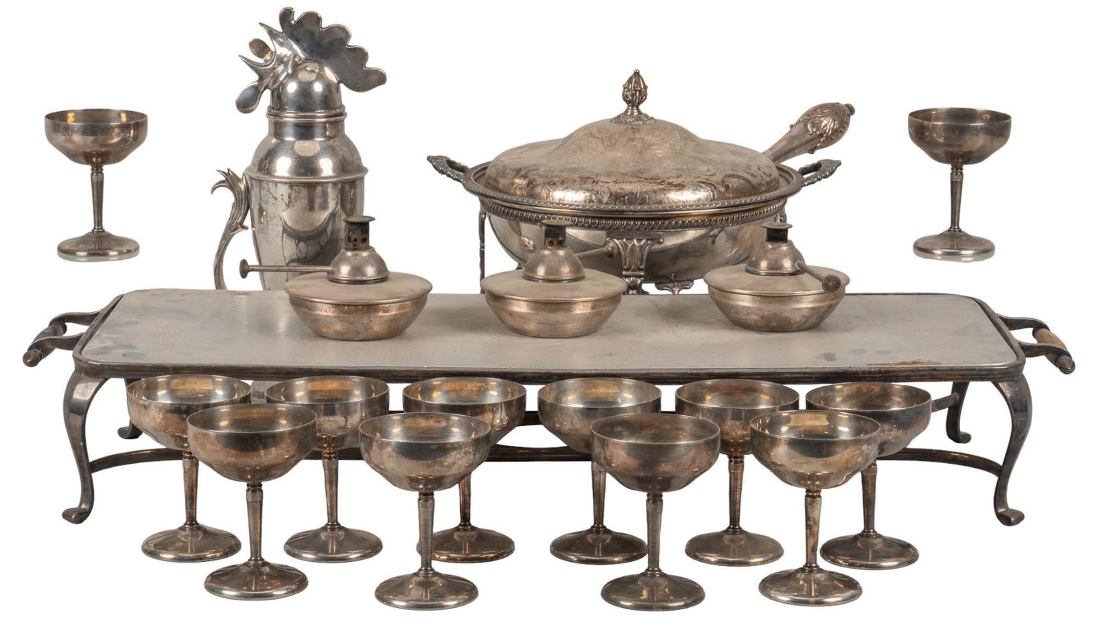 20PC LOT OF STERLING SILVER ITEMS, 44.3 T.O.W.Mar 07, 2026Sterling Silver Assorted Tableware Lot, Including Tray, Shakers, & SpoonFeb 27, 20262 pc Lot Victorian Meriden & Rogers Silverplate Cruet Condiment CastorsFeb 28, 2026Silverplate Flatware, Tableware and AccessoriesFeb 26, 2026Large Collection of Antique & Vintage Silver PlateAssorted Silverplate Flatware and Serving Pieces, 12 PiecesMar 07, 2026ANTIQUE AND VINTAGE SILVER PLATED TABLEWARES4 days Left8 Sterling Silver Baby and Table ArticlesFeb 26, 2026Rococo Style Silver Plate Coffee And Tea Set (7-piece), C. Mid-late 20th CenturyFeb 26, 20267 Sterling Silver Table ArticlesFeb 26, 2026Six Silver Plate Serving Articles Including Five-Light CandelabrumMar 07, 2026Five Silverplate Table Articles including English Covered Serving Dishes and Others3 days Left6 Sterling Silver Table Articles,Feb 26, 2026Collection Various Sterling Silver Weighted Tables WaresFeb 28, 2026William Adams, Etc. Silver Plate Tableware, 8 Pcs.Mar 12, 2026Antique sterling silver holloware and flatware, 11pc: Saart Brothers weighted sterling tea / coffee3 days Left
