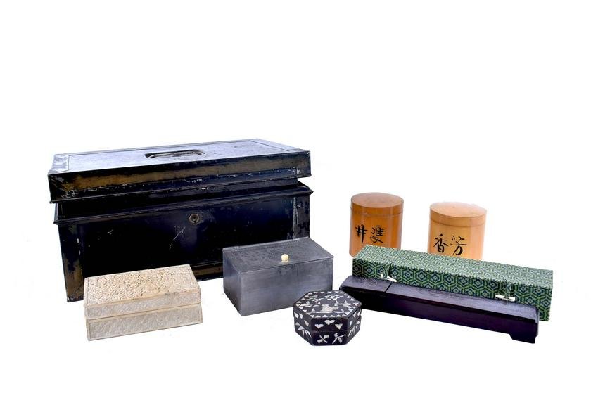 GROUP OF TEN VARIOUS MATERIAL BOXES