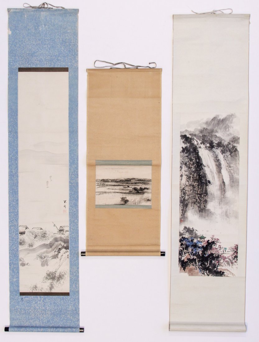 Group of Three Hand-Painted Scrolls