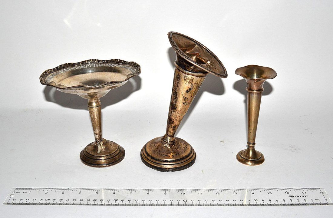 LOT OF 3 STERLING SILVER TRUMPET VASES 290 GMar 09, 2026Lot of Weighted Sterling Silver PiecesMar 14, 2026Lot of 3 Vintage Judaica Kiddush Goblets3 days LeftLot Of Weighted Sterling Silver Three Piece Creamer, Sugar Bowl And Footed Bowl Set 4"X3"Mar 08, 2026(4) STERLING SILVER LOTMar 15, 2026Lot of 7 Pewter/Silverplate ArticlesMar 08, 2026A Lot of 4 Silver Plated Altar Candlesticks4 days Left(4) STERLING SILVER, 800 SILVER, COIN SILVER LOTMar 15, 20262 Metal Vases, inc. Persian Ornately Tooled Piece.1 day LeftPair of Sterling Silver Trumpet VasesMar 11, 2026Two 800 Silver Fluted Trumpet VasesMar 11, 2026Seven Sterling Silver Footed Tazzas and BowlsMar 13, 2026Sterling Silver Trumpet Vase - Tall Slim Form, Weighted BaseFisher Silversmiths Hurricane Lamp Candlestick Holders Set of 2 in .925 Sterling Silver5 hrs LeftFisher Silversmiths Hurricane Lamp Candlestick Holders Set of 2 in .925 Sterling Silver1 day LeftSterling and Silver Plate Estate Tablewares6 days Left