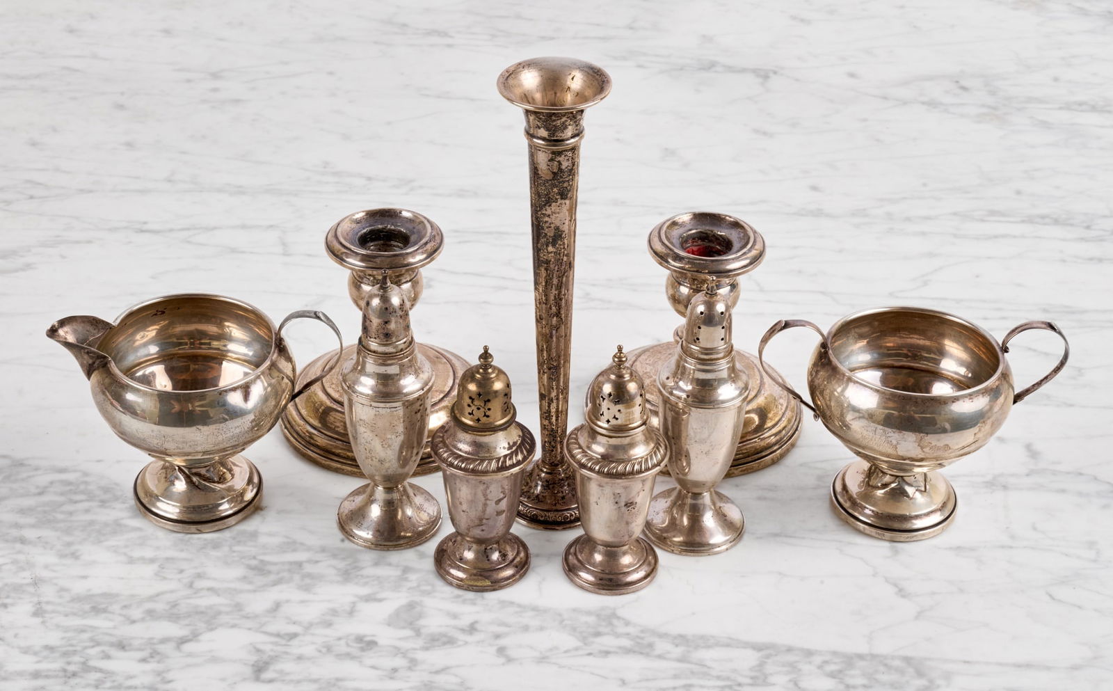 8 pc Lot Weighted Sterling Silver 33.616 OZT2 days LeftLot of Weighted Sterling Silver PiecesMar 14, 2026Lot of Assorted Weighted Sterling Silver PiecesMar 14, 2026Sterling Silver and Silverplate LotMar 07, 2026Lot of Weighted Sterling Silver CandlesticksMar 14, 2026Lot of Mixed Silverplate and Sterling Items11 hrs LeftLot Of Weighted Sterling Silver Three Piece Creamer, Sugar Bowl And Footed Bowl Set 4"X3"Mar 08, 2026TOWLE AND OTHER WEIGHTED STERLING SILVER SHORT CANDLESTICKS / CANDLEHOLDERS, LOT OF EIGHT5 days LeftDUCHIN CREATIONS AND OTHER WEIGHTED STERLING SILVER CANDLEHOLDERS AND SHAKERS, LOT OF EIGHT5 days Left14 Piece Sterling Silver Lot4 days LeftLot of 7 Pewter/Silverplate ArticlesMar 08, 2026A Lot of 4 Silver Plated Altar Candlesticks4 days Left7 pc. Sterling Silver Weighted Candlesticks & More1 day Left7 VINTAGE STERLING SILVER CANDLESTICKS3 days LeftSterling and Silver Plate Estate Tablewares7 days Left4 Sterling Miniature VesselsMar 14, 2026