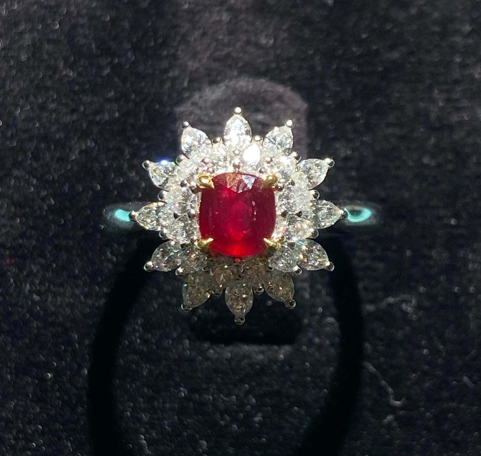 18K Gold Natural Ruby Ring with 40 Diamonds, 0.7 ct Gemstone