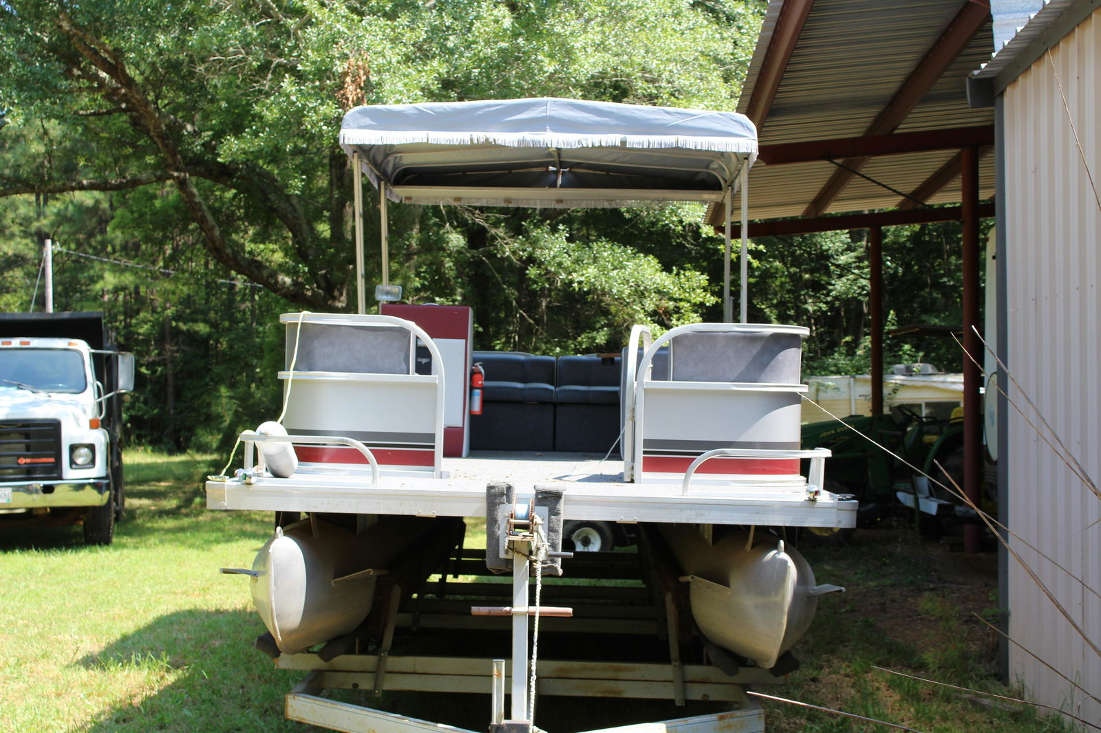 SoldTonka Deluxe Fisherman Truck Set with Pontoon BoatThis is a #130 Tonka Deluxe Fisherman Truck Set with pontoon boat, motor, and trailer. The motor’s fragile composite propellers are missing. It measures approximately 28" L all together.See Sold Price