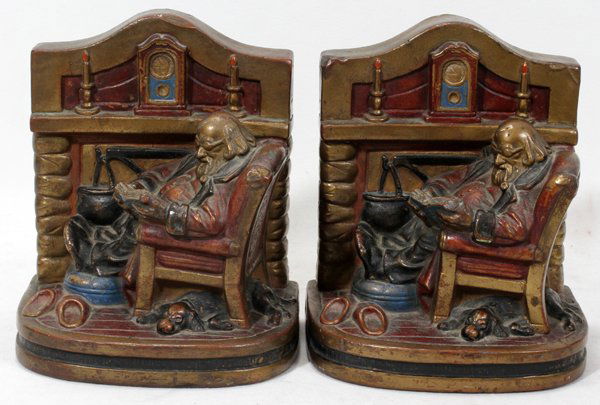 A composed lot of two Austrian cold painted bronze figurine groupsFeb 24, 2026PAIR OF VINTAGE PAINTED CHALKWARE BOOKENDSFeb 24, 2026(4) CARVED & POLYCHROME PAINTED ARM-FORM CANDLE SCONCES4 days LeftA Pair of Tom Clark Cairn Studios Mr. and Mrs. Claus Christmas Gnome FigurinesMar 01, 2026Owl on Book Bird Cast Iron Bookends3 days LeftBilly Bowen Patina Brass Bookends, "Copyright 1928 Cape Cod Fisherman"Feb 28, 2026Pair of Heavy Wood Book Ends4 days Left(2) Vintage Hand Painted Pottery Figurines13 hrs LeftBradley and Hubbard of Dante Alighieri Bust BookendsMar 07, 2026Armor Bronze Huck Finn Bookends with Bronze-Clad FinishPair of Enrico Glicenstein Caped Figure Terra Cotta SculpturesMar 04, 2026RR- Vintage Dante and Beatriz BookendsMar 01, 2026Zeus Bookends5 days LeftLouis McClellan Potter (1873-1912), Pair of Praying Monk bookends, 1911Mar 03, 2026Two Chinese Bronze Sculptures of Buddha5 days LeftVINTAGE HAND CAST METALWARE ABRAHAM LINCOLN ON BENCH BOOKENDS4 days Left