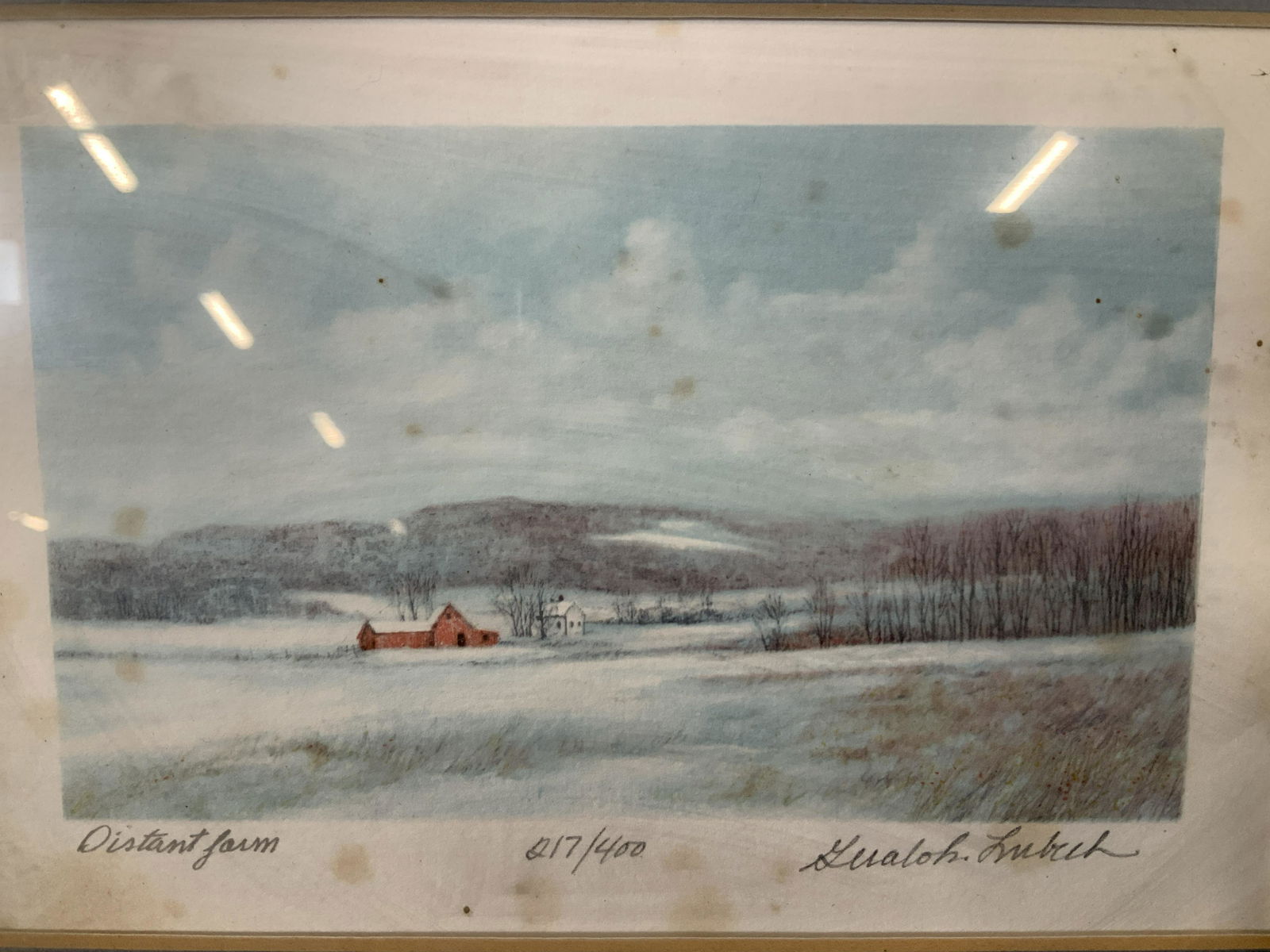 GUALOH LUBECK Signed Distant Farm Lithograph