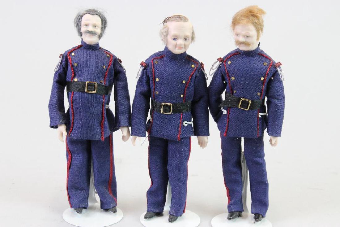 SoldLot 4 Vintage Royal Guard / Soldier DollsFour vintage composite dolls with moveable ‘ sleep eyes ‘ that open / close. Dolls wear fabric clothing reminiscent of soldiers or guards. Pieces are crafted from composite materials. Largest measSee Sold Price