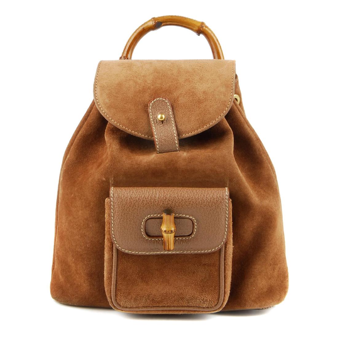 GUCCI - a brown suede and leather bamboo backpack.
