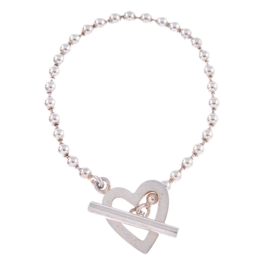 GUCCI - a silver bracelet and matching ring. The