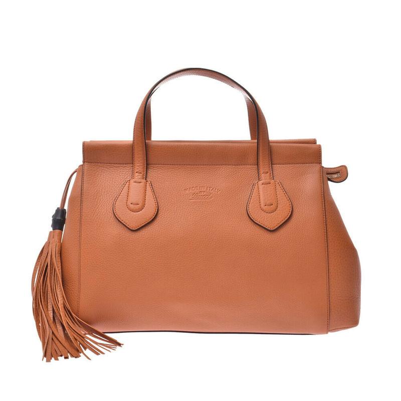 GUCCI BAMBOO HAND BAG LEATHER BROWN GOLD