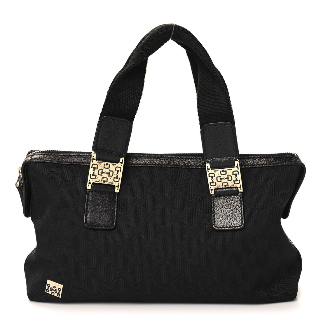 GUCCI GG Canvas Jackie Hand Bag Black Gold 145818 Italy