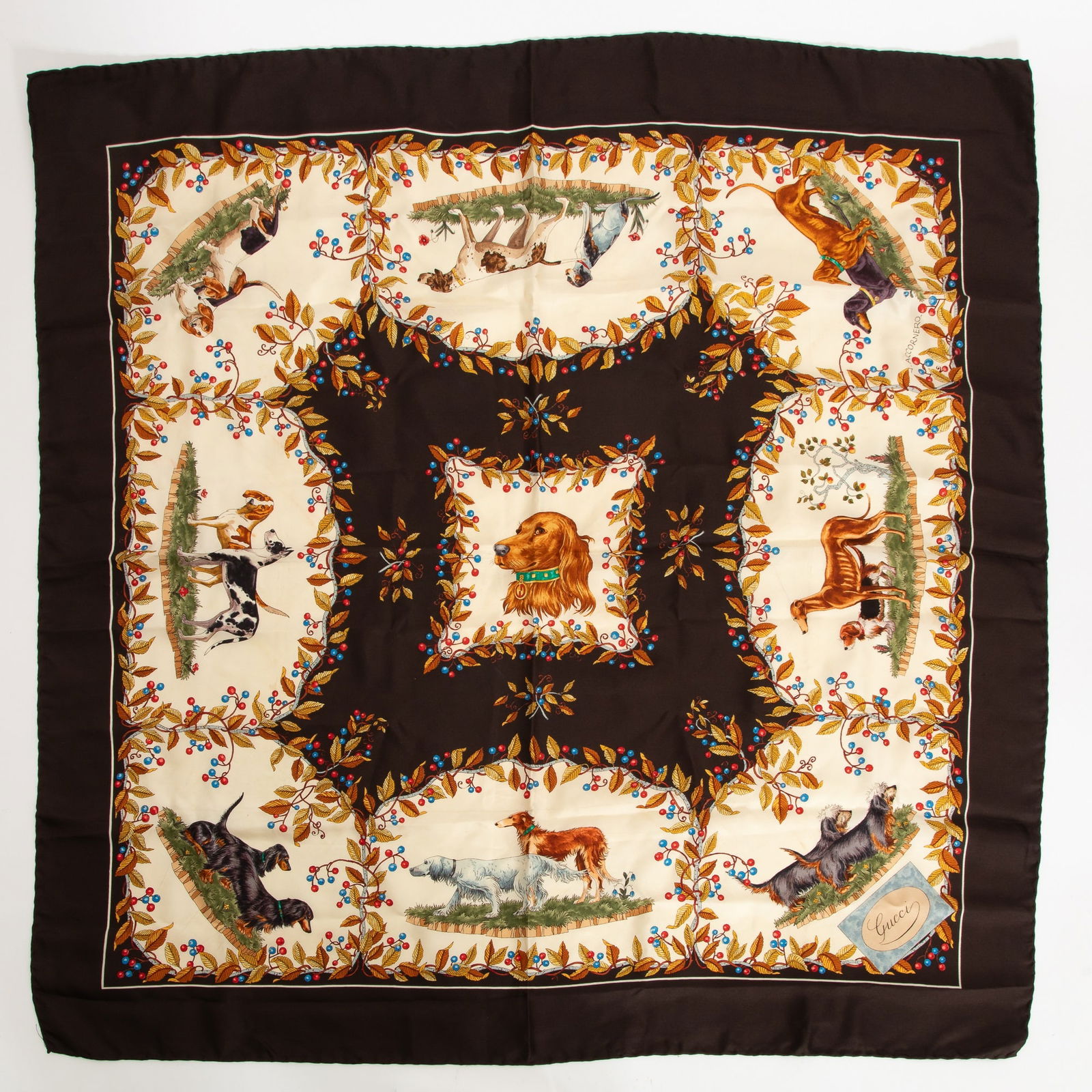 Gucci Hunting Dog Pattern Silk Scarf