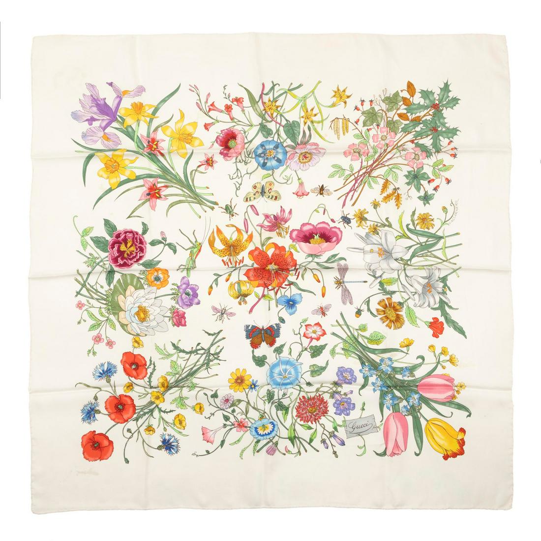 Vintage Gucci silk floral print scarf in purple, green, and yellowAllamoda Vintage4.3(1)$1002 days Left