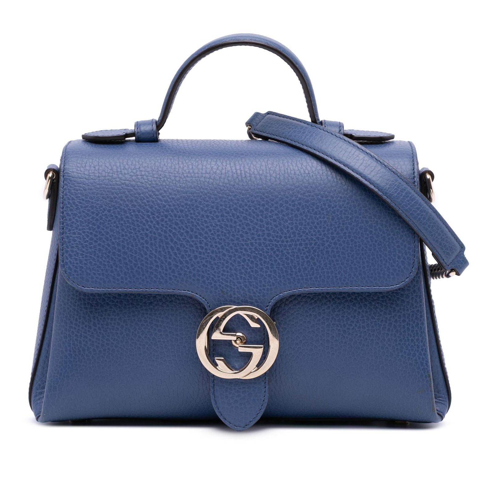 Gucci Leather Interlocking G Charmy Satchel Blue Italy