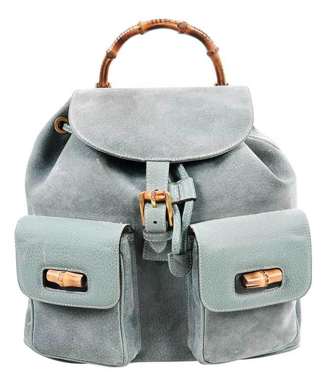 Authentic GUCCI Bamboo Suede Backpack Light Blue Gold 003 2058 9016
