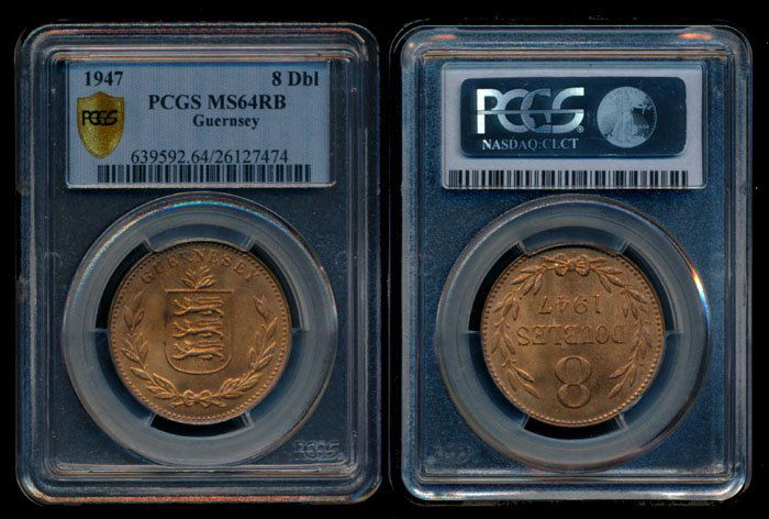 Guernsey 8 Doubles 1947 PCGS MS64RB