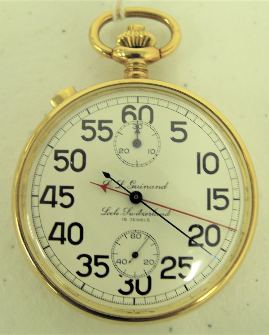 Guinand 14K Gold Case 15j Stop Watch 1/5 Second Split