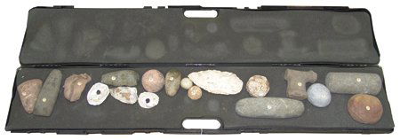 Gun Case w/18 Stone Artifacts