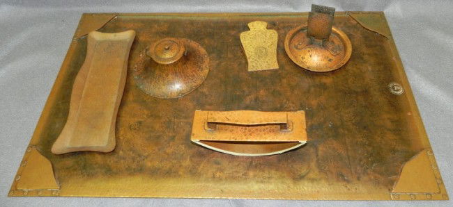 Gustav Stickley hammered copper desk set