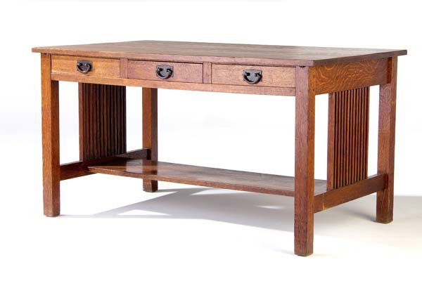 GUSTAV STICKLEY Spindled library table (no. 659) w