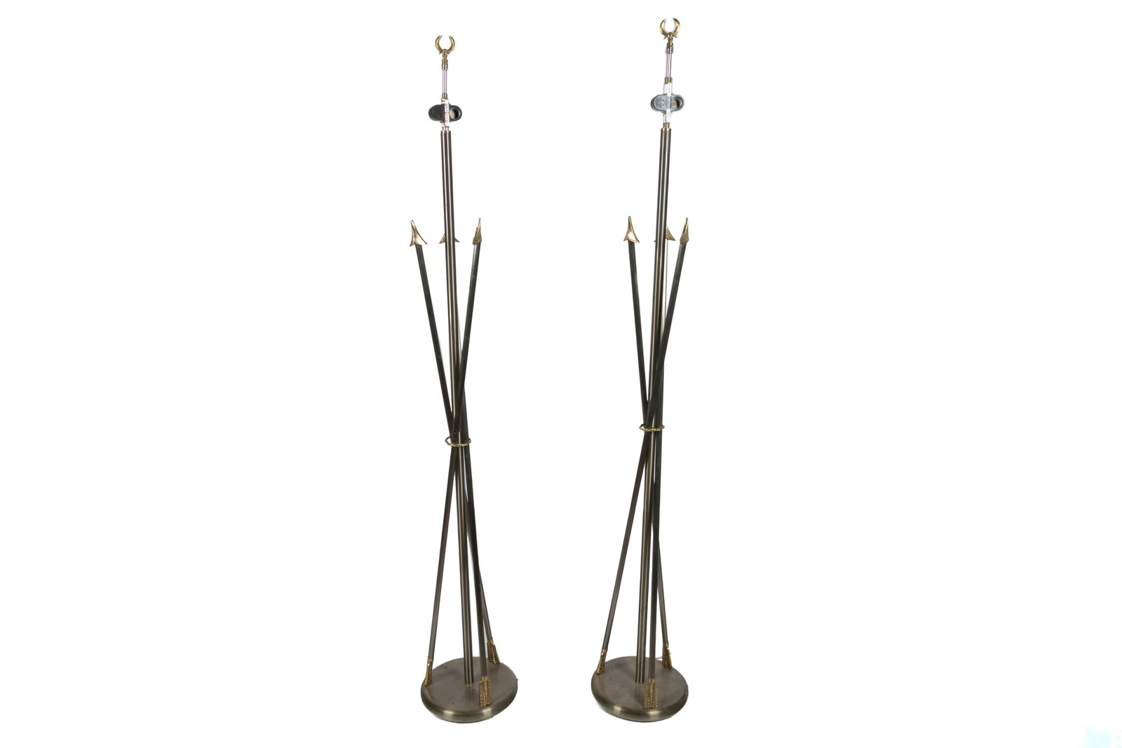 PAIR OF SPEAR-HEADED DECORATIVE METAL FLOOR LAMPS
