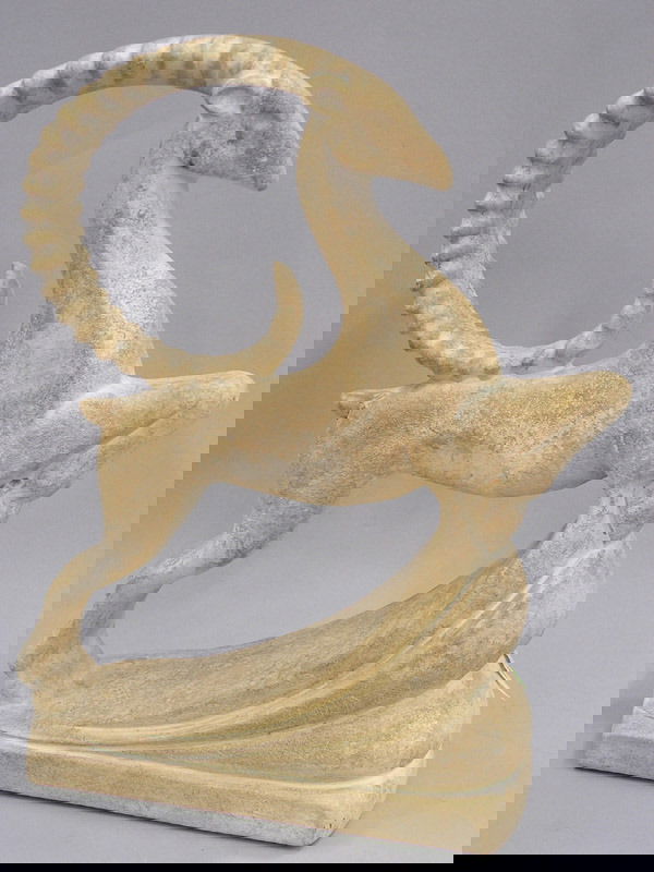 SoldMid-Century Haeger Pottery Gazelle SculptureStriking MCM ceramic sculpture by Haeger featuring a stylized leaping gazelle/antelope in a satin matte white glaze. Dramatic sweeping horn and curved base give it great movement and presence. MeasureSee Sold Price