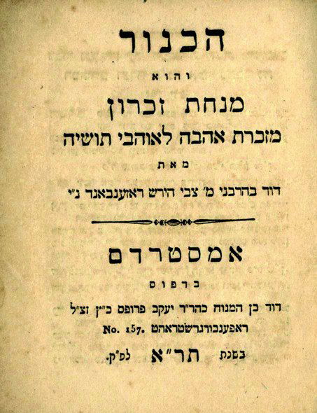 HaKinor. Amsterdam 1841. Only Edition