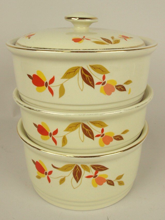 Hall Jewel Tea Autumn leaf 4 piece stack set