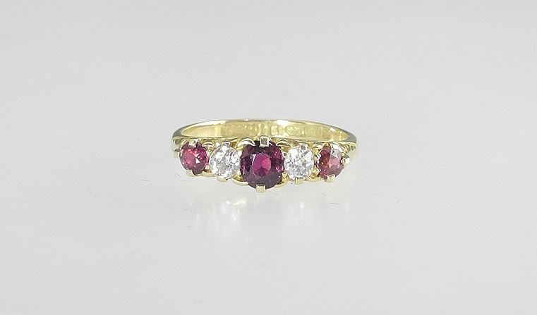 Hallmarked 18K Ruby & Diamond Ring, Size 6, 3.1g.
