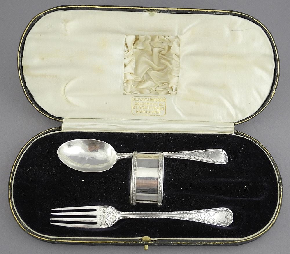 Hallmarked Spoon & Fork (62g) with Plated Napkin Ring Set.
