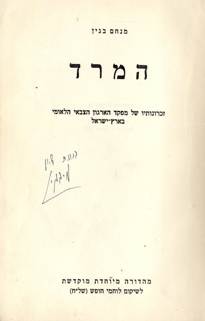 HaMered. Menachem Begin. Special Edition. Inscribed.