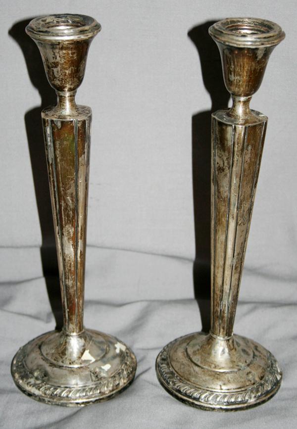 HAMILTON WEIGHTED STERLING CANDLESTICKS, PAIR,