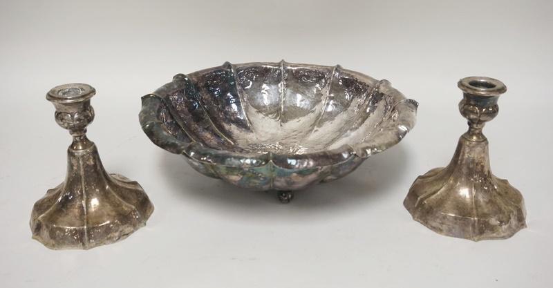 HAMMERED SILVER PLATED CONSOLE SET
