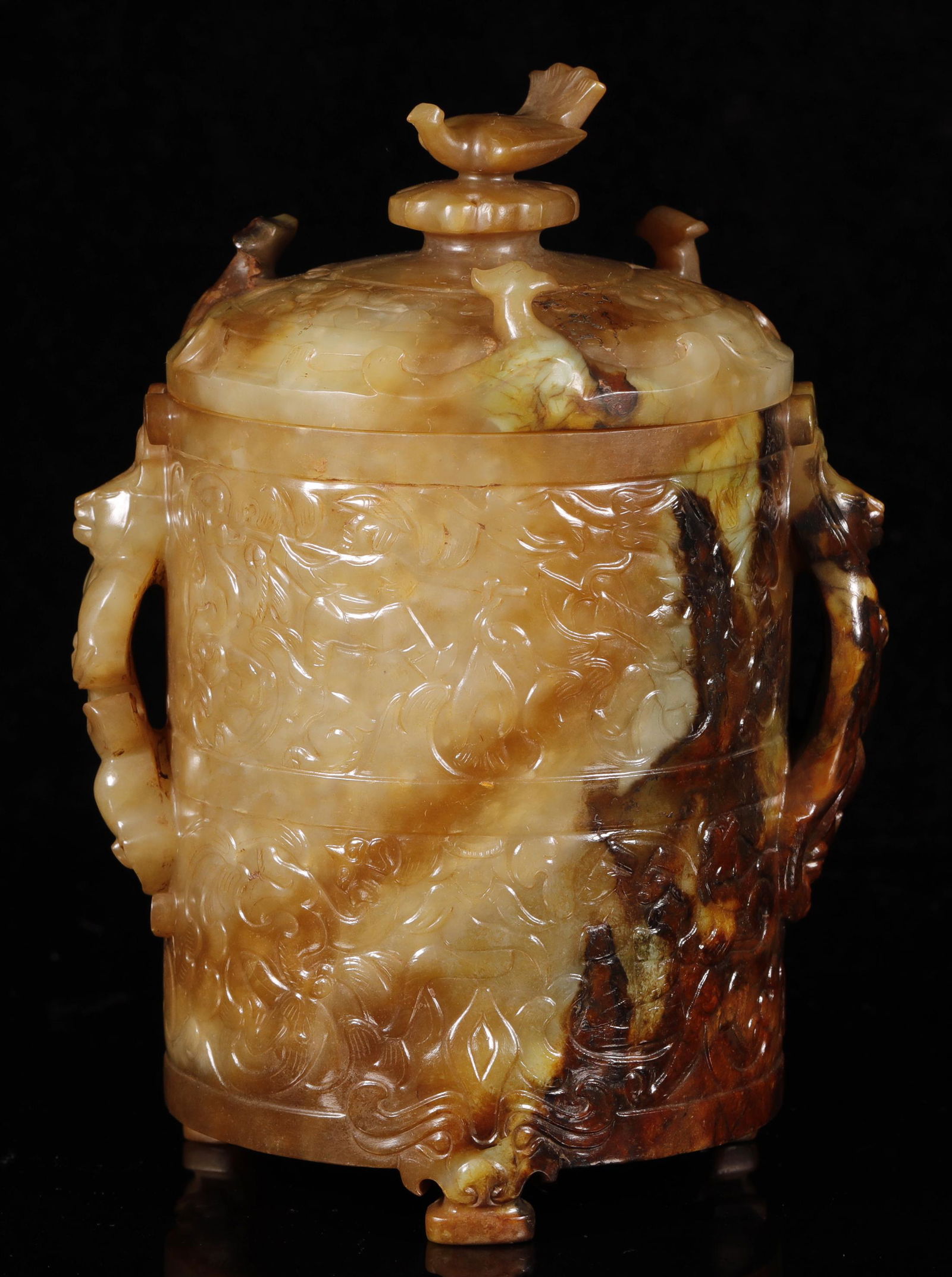 Han Dynasty - Hunting Pattern Tripod Jade Jar