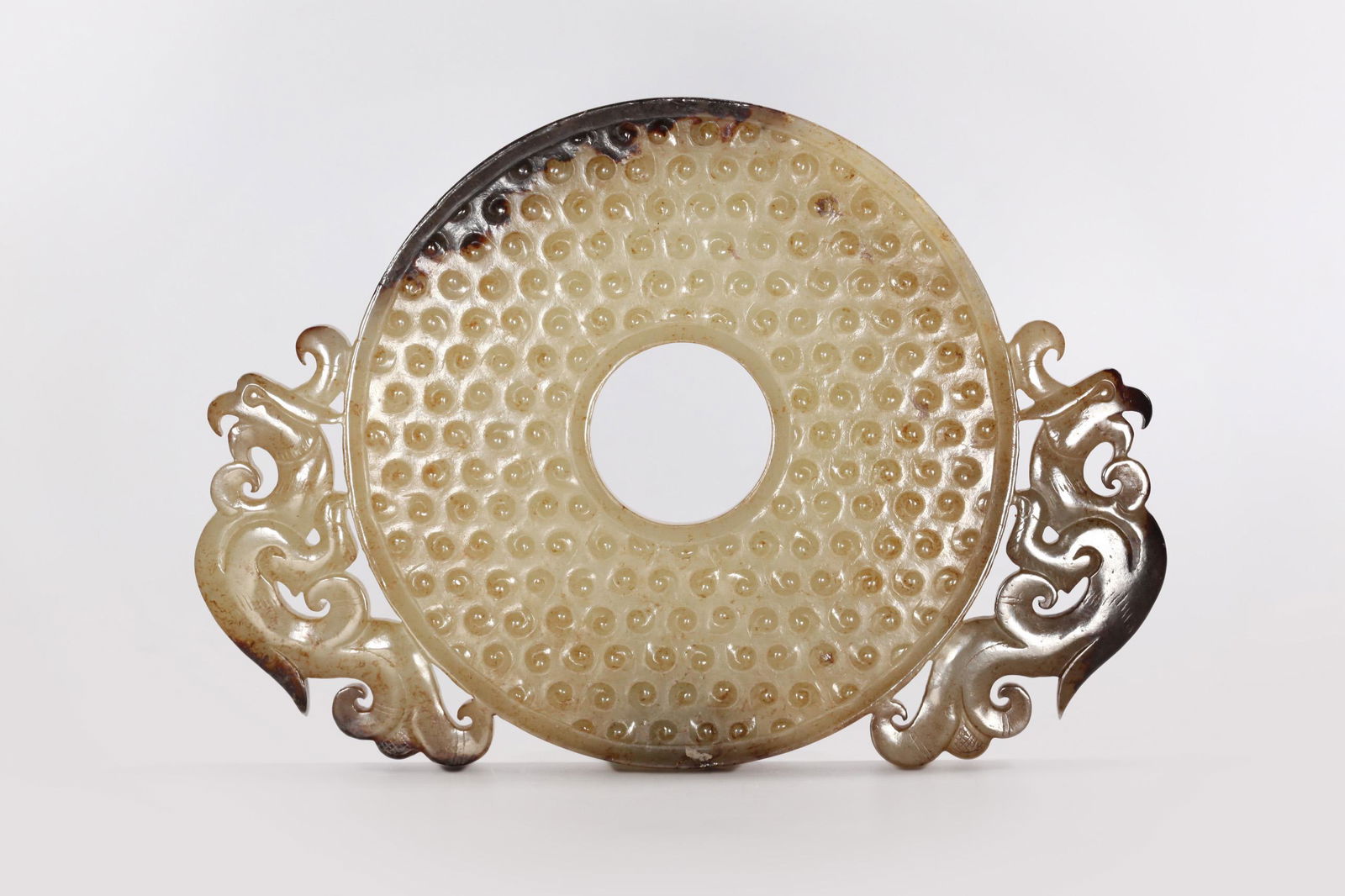 A pair of Han Dynasty copper-inlaid jade goose smoke
