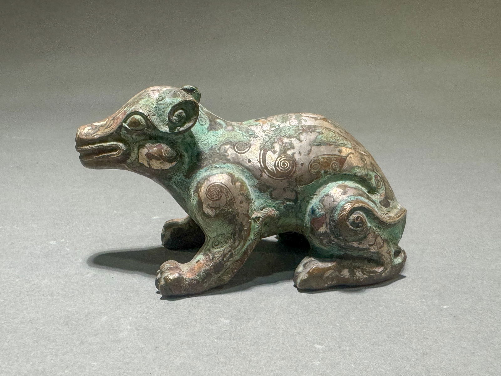 Han silver-inlaid bronze creature
