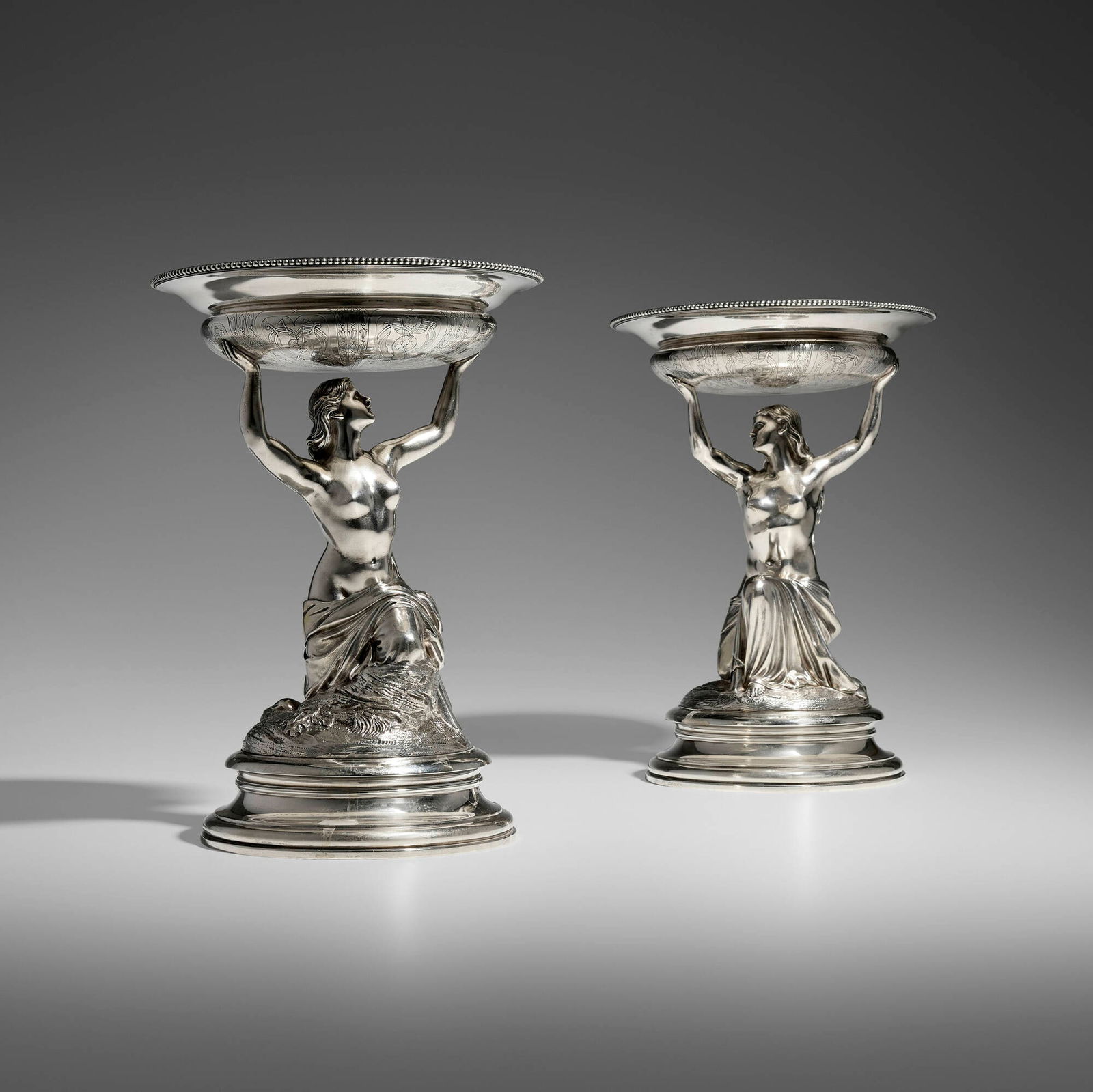 Hancocks & Co., Victorian Figural Compotes, Pair