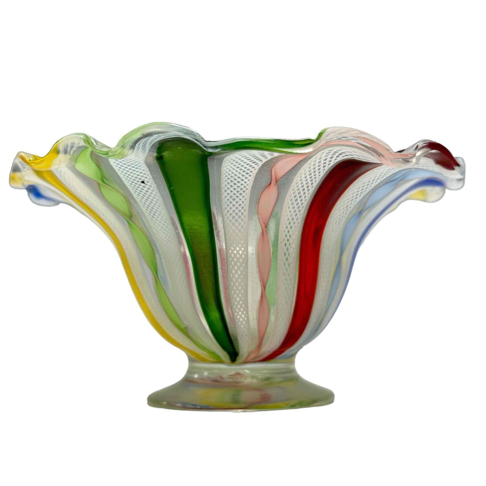 MODERNIST MURANO ART GLASS MULTICOLOR ZIGZAG SWIRL SCULPTURAL SCROLL BOWLActivity Auctions4.5(390)$600