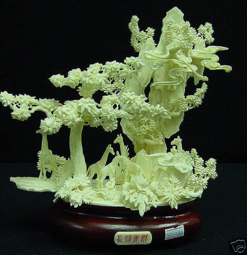 HAND CARVED BONE GIRAFFS MOUNTAIN