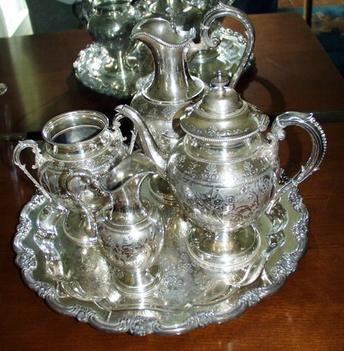 Hand Chased Electro Plate Tea Set With Tray, 'c