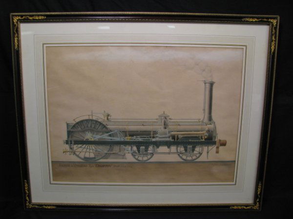 HAND COLORED ENGRAVING " CRAMPTON" LOCOMOTIVE
