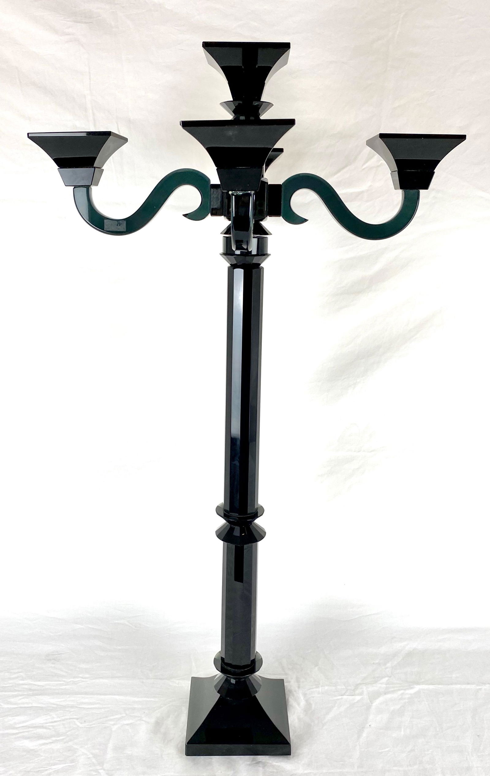 Hand Cut Crystal Black 4 Arm Candelabra